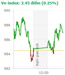 Nhờ sự bùng nổ của dòng CP thủy sản, dệt may, ngân hàng và một số mã vốn hóa lớn đã giúp cả 2 chỉ số lấy lại sắc xanh sau 2 phiên giảm điểm trước đó. Kết thúc phiên giao dịch, VN-Index tăng 2,45 điểm (0,25%) lên 986,91 điểm với khối lượng giao dịch đạt 165,3 triệu CP, trị giá 3.317,6 tỷ đồng; HNX-Index tăng 0,12 điểm (0,11%) lên 107,42 điểm với khối lượng giao dịch đạt 30,1 triệu CP trị giá 402 tỷ đồng.