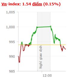 Tưởng chừng dòng tiền chảy mạnh sẽ giúp VN-Index chinh phục thành công ngưỡng kháng cự tâm lý lịch sử 1.000 điểm trong phiên hôm nay, nhưng một lần nữa chỉ số này lại thất bại trước áp lực chốt lời gia tăng. Kết thúc phiên giao dịch, VN-Index giảm 1,54 điểm (-0,15%) xuống 992,45 điểm với khối lượng giao dịch đạt 297,44 triệu CP, trị giá 5.933,4 tỷ đồng; HNX-Index giảm 0,28 điểm (-0,26%) xuống 108,24 điểm với khối lượng giao dịch đạt 58,62 triệu CP, trị giá 702 tỷ đồng. Thị trường điều chỉnh, nhưng điểm tích cực là khối ngoại đã quay lại trạng thái mua ròng sau 5 phiên bán ròng trước đó. Cụ thể, trên sàn HSX, khối ngoại giao dịch trị giá 2.223,72 tỷ với giá trị mua ròng đạt 93,12 tỷ đồng. Trên sàn HNX, họ giao dịch trị giá 67,44 tỷ với giá trị mua ròng đạt 48,2 tỷ đồng. Tính chung trong phiên hôm nay khối đã mua ròng với giá trị đạt 141,32 tỷ đồng trên 2 sàn.