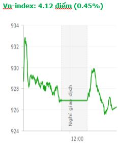Phiên đồng thuận tăng điểm trên 2 sàn của chứng trường Việt trong bối cảnh thị trường tài chính khởi sắc, tuy nhiên độ sôi động chưa có khi thanh khoản vẫn ở mức thấp. Kết thúc phiên giao dịch, VN-Index tăng 4,12 điểm (0,45%) lên 926,28 điểm với khối lượng giao dịch đạt 145,8 triệu CP, trị giá 2.762,7 tỷ đồng. HNX-Index tăng 0,34 điểm (0,33%) lên 104,54 điểm với khối lượng giao dịch đạt 35 triệu CP, trị giá 414,5 tỷ đồng. Thanh khoản cạn kiệt phiên thứ 4 liên tiếp, song điểm sáng là khối ngoại đã duy trì liên tục 4 phiên mua ròng. Cụ thể, trong phiên hôm nay trên sàn HSX, khối ngoại giao dịch trị giá 519,51 tỷ với giá trị mua ròng đạt 35,41 tỷ đồng. Trên sàn HNX, họ giao dịch trị giá 26,79 tỷ với giá trị bán ròng đạt 19,17 tỷ đồng.