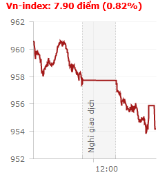 Phiên giao dịch ngày 12/06/2019. Sau nhiều phiên tăng điểm với thanh khoản mất hút. Thì hôm nay thị trường đã phải gánh chịu áp lực bán khá mạnh khi các nhà đầu tư đã tỏ ra chán nản trước lực cầu yếu kém. Kết thúc phiên giao dịch, VN-Index giảm 7,9 điểm (-0,82%) xuống 954,17 điểm với khối lượng giao dịch đạt 138,1 triệu CP, trị giá 3.930,65 tỷ đồng; HNX-Index giảm 0,4 điểm (-0,38%) xuống 103,56 điểm với khối lượng giao dịch đạt 27,3 triệu CP, trị giá 295,11 tỷ đồng.