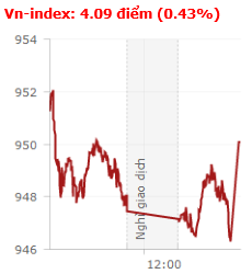 Phiên giao dịch ngày 13/06/2019: Áp lực bán tiếp tục đề nặng trên thị trường, trong khi lực cầu dè dặt khiến VN-Index nới rộng đà giảm, lùi xa dần mốc 950 điểm. Tuy nhiên, nhờ sự hồi phục của khá nhiều mã vốn hóa lớn trong phiên ATC đã giúp chỉ số này bật trở lại và giữ được mốc tâm lý 950 điểm này. Kết thúc phiên giao dịch, VN-Index giảm 4,09 điểm (-0,43%) xuống còn 950,08 điểm với khối lượng giao dịch đạt 142,81 triệu CP, trị giá 3.299,3 tỷ đồng; HNX-Index giảm 0,06 điểm (-0,06%) xuống 103,5 điểm với khối lượng giao dịch đạt 22,25 triệu CP, trị giá 268,89 tỷ đồng.