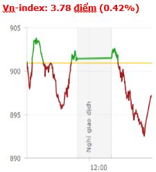 Sắc đỏ chưa buông tha thị trường, dù về cuối phiên lực cầu khá tốt. Kết thúc phiên giao dịch, VN-Index giảm 3,78 điểm (-0,42%) xuống 897,15 điểm với khối lượng giao dịch đạt 166,09 triệu CP, trị giá 4.058,82 tỷ đồng; HNX-Index giảm 0,18 điểm (-0,18%) xuống 101,02 điểm với khối lượng giao dịch đạt 37,68 triệu CP, trị giá 502,43 tỷ đồng. Duy trì phiên bán ròng thứ 4 liên tiếp và có phần tiêu cực hơn so với các phiên trước đó, khi giá trị bán ròng hôm nay tăng khá mạnh trên cả 2 sàn, đạt 481,86 tỷ đồng. Cụ thể, trên sàn HSX, khối ngoại giao dịch trị giá 1.123,66 tỷ với giá trị bán ròng đạt 359,26 tỷ đồng. Trên sàn HNX, họ giao dịch trị giá 125,08 tỷ với giá trị bán ròng đạt 122,6 tỷ đồng.
