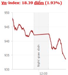 Chứng khoán Việt Nam có một phiên lao dốc khá mạnh trong ngày giao dịch đầu tuần mới, trước áp lực bán rất mạnh về cuối phiên. Kết thúc phiên giao dịch, VN-Index giảm 18,39 điểm (-1,93%) xuống còn 933,65 điểm với khối lượng giao dịch đạt 255,2 triệu CP, trị giá 5.347,3 tỷ đồng; HNX-Index giảm 1,64 điểm (-1,54%) xuống 105,01 điểm với khối lượng giao dịch đạt 40,1 triệu CP, trị giá 540,1 tỷ đồng.