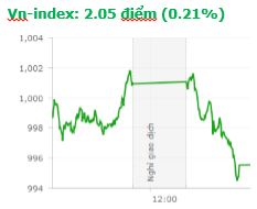 Áp lực chốt lời gia tăng mạnh trong phiên chiều khiến thị trường đuối sức và chỉ số VN-Index một lần nữa chinh phục bất thành mốc 1.000 điểm. Kết thúc phiên, VN-Index tăng 2,05 điểm (0,21%) lên 995,54 điểm với khối lượng giao dịch đạt 244,42 triệu CP, trị giá 5.120,12 tỷ đồng; HNX-Index tăng 0,6 điểm (0,53%) lên 114,2 điểm với khối lượng giao dịch đạt 63,2 triệu CP, trị giá 828,5 tỷ đồng. Sau phiên bán ròng hôm qua, thì khối ngoại lại quay về trạng thái mua ròng trên cả 2 sàn trong phiên hôm nay. Cụ thể, trên sàn HSX họ giao dịch trị giá 1.110,56 tỷ với giá trị mua ròng đạt 63,94 tỷ đồng. Trên sàn HNX, họ giao dịch trị giá 69,64 tỷ với giá trị mua ròng đạt 25,58 tỷ đồng.