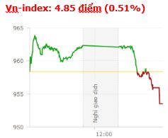 Áp lực bán bất ngờ gia tăng mạnh trong phiên chiều, khiến cả 2 chỉ số đảo chiều giảm điểm mặc dù phiên sáng thị trường giao dịch khá tích cực. Kết thúc phiên, VN-Index giảm 4,85 điểm (-0,51%) xuống 953,51 điểm với khối lượng giao dịch đạt 147,5 triệu CP, trị giá 3.642,6 tỷ đồng; HNX-Index giảm 0,55 điểm (-0,51%) xuống 107,55 điểm với khối lượng giao dịch đạt 40,1 triệu CP, trị giá 466,3 tỷ đồng. Duy trì phiên bán ròng thứ 2 liên tiếp, song giá trị bán ròng đã giảm đi đáng kể so với phiên trước đó, thậm chí khối ngoại còn quay lại mua ròng khá mạnh trên sàn sàn HNX. Cụ thể, trên sàn HSX khối ngoại giao dịch trị giá 1.132,87 tỷ với giá trị bán ròng đạt 87,61 tỷ đồng. Trên sàn HNX, họ giao dịch trị giá 54,47 tỷ với giá trị mua ròng đạt 42483 tỷ đồng. Chung quy lại, khối ngoại đã bán ròng 45,2 tỷ đồng trong phiên hôm nay trên cả 2 sàn.