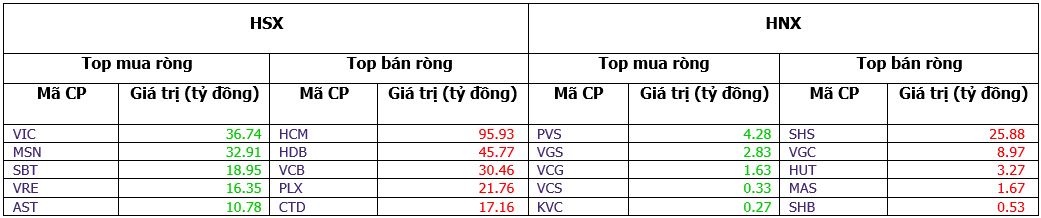 Sau phiên mua ròng HPG cuối tuần trước với giá trị 24,4 tỷ đồng, khối ngoại quay ra bán ròng gần 200 tỷ đồng mã này trong phiên hôm nay (5/3), qua đó tiếp tục có thêm một phiên bán ròng 106 tỷ đồng trong phiên đầu tuần mới. Trên sàn HOSE, khối ngoại tiếp tục bán ròng 8,2 triệu đơn vị, với tổng giá trị bán ròng tương ứng 195,59 tỷ đồng (cả trái phiếu DN). Trong khi phiên trước đó, khối này bán ròng 4,35 triệu đơn vị, giá trị 127,37 tỷ đồng. Trên sàn HNX, khối ngoại có phiên thứ 2 liên tiếp mua ròng trên HNX với khối lượng 972.013 đơn vị, với tổng giá trị mua ròng tương ứng 29,45 tỷ đồng. Trong khi phiên cuối tuần trước mua ròng 1,16 triệu đơn vị, giá trị 17,2 tỷ đồng.