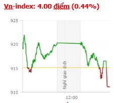 | Tổng hợp: Giao dịch về cuối phiên chiều khá kịch tính khi VN-Index bất ngờ đảo chiều giảm điểm. Sự đi xuống của các ngành bảo hiểm, bất động sản, khai khoáng... đã góp phần làm nên sự bất ngờ này. Kết thúc phiên giao dịch, VN-Index giảm 4 điểm (-0,44%) xuống còn 911,12 điểm với khối lượng giao dịch đạt 118,44 triệu CP, trị giá 2.776,98 tỷ đồng; HNX-Index tăng nhẹ 0,86 điểm (0,86%) lên 101,62 điểm với khối lượng giao dịch đạt 28,3 triệu CP, trị giá 370,6 tỷ đồng.