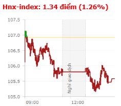 | Tổng hợp: Áp lực bán chốt lời có phần gia tăng sau những chuỗi ngày dài tăng điểm, đặc biệt là tại nhóm CP vốn hóa lớn trên sàn HNX, khiến cho 2 chỉ số có sự trái chiều. Kết thúc phiên giao dịch, VN-Index tăng 1,58 điểm (0,17%) lên 943,97 điểm với khối lượng giao dịch đạt 199,21 triệu CP, trị giá 4.521,95 tỷ đồng; HNX-Index giảm 1,34 điểm (-1,26%) xuống 105,58 điểm với khối lượng giao dịch đạt 49,96 triệu CP, trị giá 700,6 tỷ đồng.