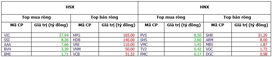 Tiếp tục là những phiên bán ròng của khối ngoại và đang có xu hướng gia tăng qua từng phiên. Cụ thể, trên sàn HSX họ giao dịch trị giá 1,917.93 tỷ với giá trị bán ròng đạt 637,75 tỷ đồng. Trên sàn HNX, họ giao dịch trị giá 78,93 tỷ với giá trị bán ròng đạt 33,01 tỷ đồng.