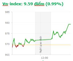 Tổng hợp: Nhóm cổ phiếu ngân hàng giao dịch tích cực hơn trong phiên chiều, cùng với sự ổn định tăng điểm của một số nhóm cổ phiếu trụ đỡ khác như bất động sản, chứng khoán, dầu khí… giúp thị trường có một phiên giao dịch khá sôi động. Kết thúc phiên giao dịch, Vn-Index tăng 9,59 điểm (0,99%) lên 979,21 điểm với khối lượng giao dịch đạt 200,6 triệu CP, trị giá 4.433 tỷ đồng; Hnx-Index tăng 1,96 điểm (1,81%) lên 110,02 điểm với khối lượng giao dịch đạt 36,5 triệu CP, trị giá 557,5 tỷ đồng.