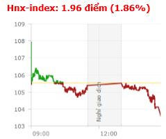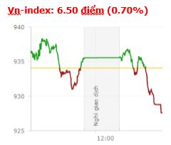 | Tổng hợp: Dòng cổ phiếu penny có phiên nổi sóng thứ 2 liên tiếp, nhưng cả 2 chỉ số vẫn đóng cửa trong sắc đó trước áp lực chốt lời dâng cao. Kết thúc phiên giao dịch, VN-Index giảm 6,5 điểm (-0,7%) xuống còn 927,58 điểm với khối lượng giao dịch đạt 232,7 triệu CP, trị giá 4.592,5 tỷ đồng; HNX-Index giảm 1,96 điểm (-1,86%) xuống còn 103,58 điểm với khối lượng giao dịch đạt 47,05 triệu CP, trị giá 482,75 tỷ đồng.
