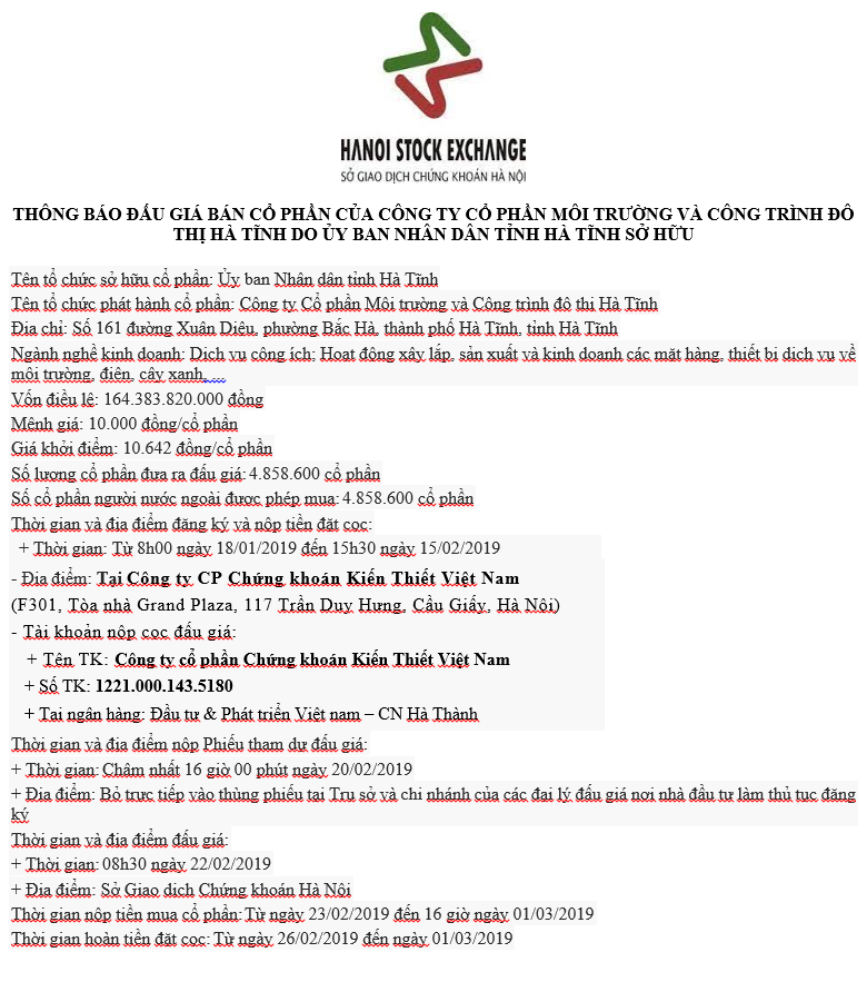 Có 0 bình luận, đánh giávề THÔNG BÁO ĐẤU GIÁ BÁN CỔ PHẦN CỦA CÔNG TY CỔ PHẦN MÔI TRƯỜNG VÀ CÔNG TRÌNH ĐÔ THỊ HÀ TĨNH DO ỦY BAN NHÂN DÂN TỈNH HÀ TĨNH SỞ HỮU