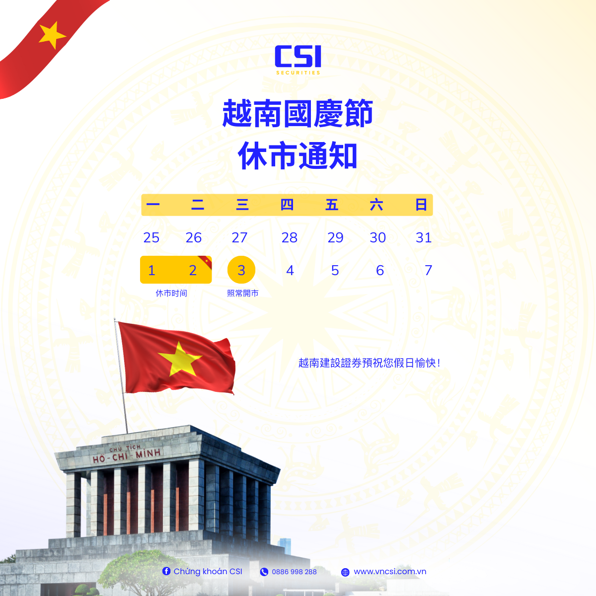 越南建設證券預祝您假日愉快!