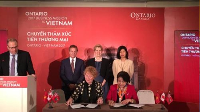 越南企业代表与加拿大安大略省企业代表日前签署合作协议。加拿大安大略省省长凯瑟琳•韦恩在签字仪式上公布了越南各组织和安大略省的六项新合作协议,其中有与越南五个教育单位的合作协议。