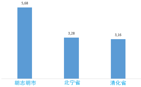 在59个获得外资注资的省市当中,胡志明市是吸引外资最多的城市,总额达56.8亿美元,占总投资额的17.2%。北宁位居第二,投资总额达32.8亿美元,占总投资额的9.9%。清化位居第三,投资总额达31.6亿美元,占总投资额的9.5%。