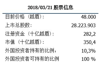 最新的经营活动:2018年第一季度,CVT预计同比2017年产量增长率为30%。2018年第一季度的预测收入和税后利润可以分别达2550亿盾(同比增加30%)和336亿盾(同比增加17%)我们预计2018年第二季度,由于CVT2号和3号生产线将以满负荷运行,利润增长率仍然保持。在即将的股东大会上,CVT预计提交继续提高CVT2号和3号生产线的产能150万平方米的方案。
