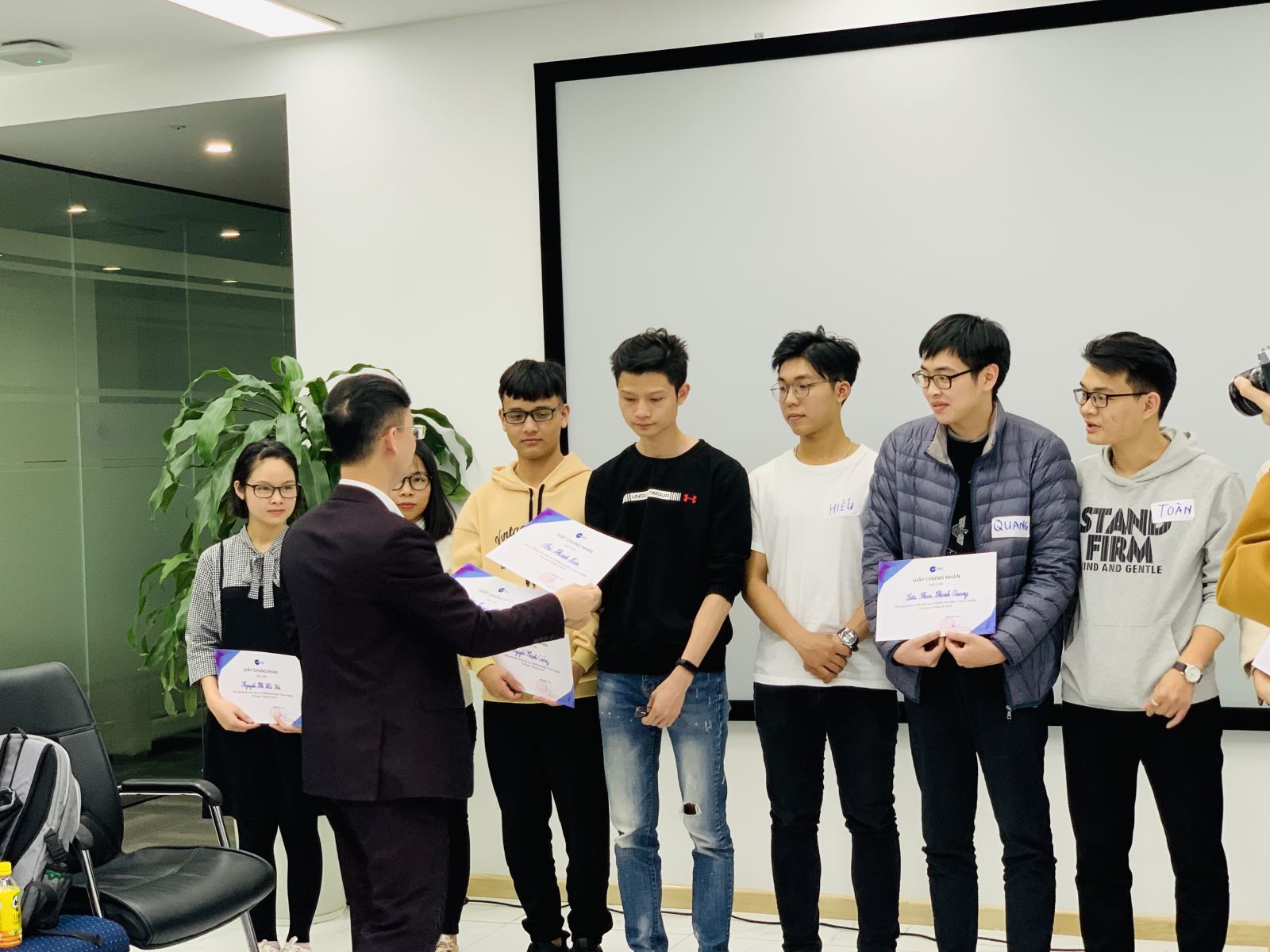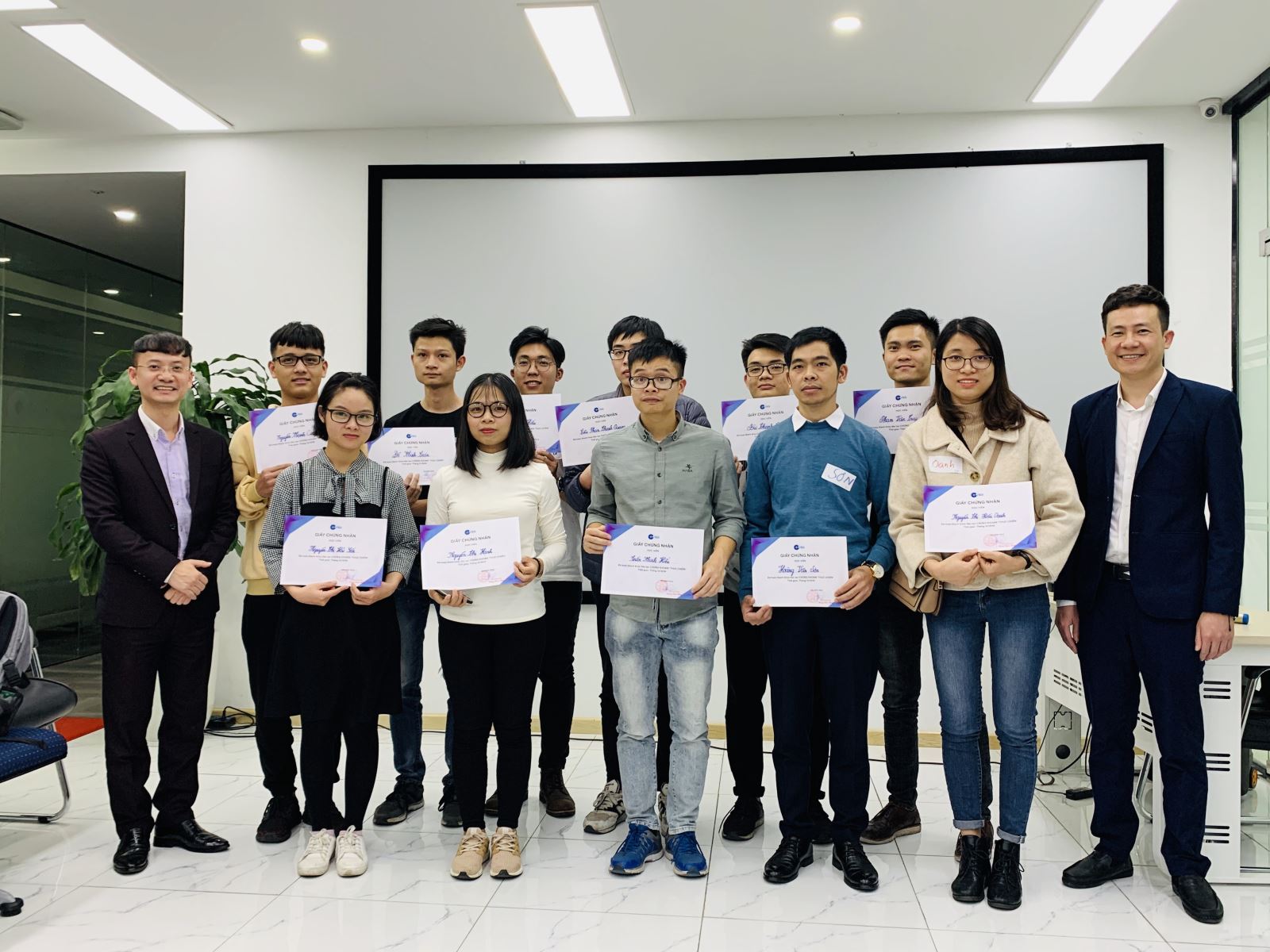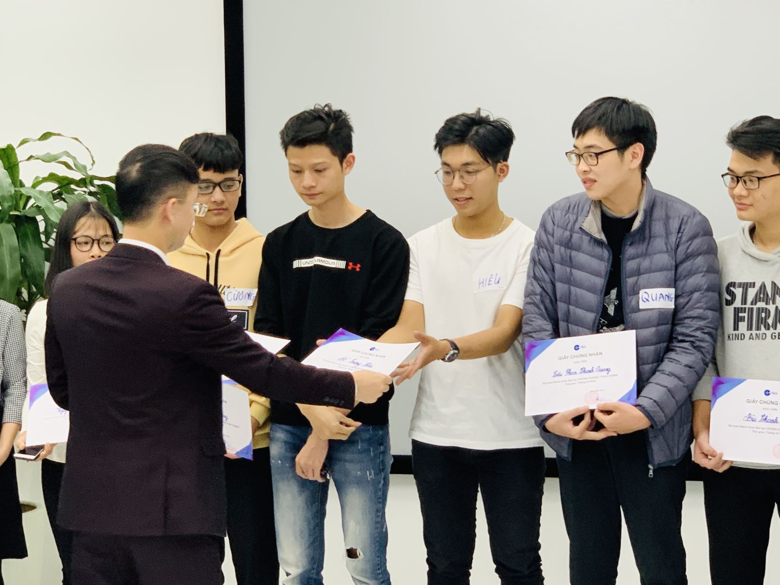 最后,越南建设证券副总经理杜宝玉先生为大家颁发结业证书。同学们高举证书集体合影留念。