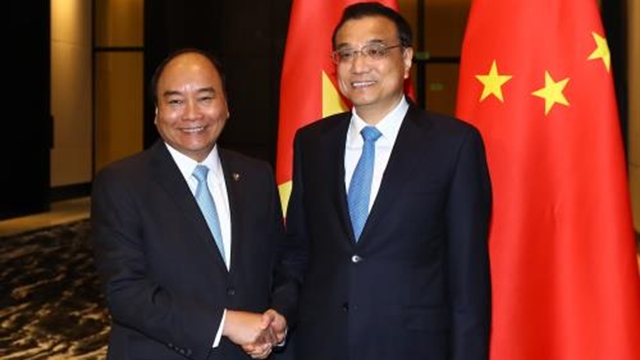 第31届东盟峰会全体会议结束后, 越南政府总理阮春福11月13日会见中国国务院总理李克强。