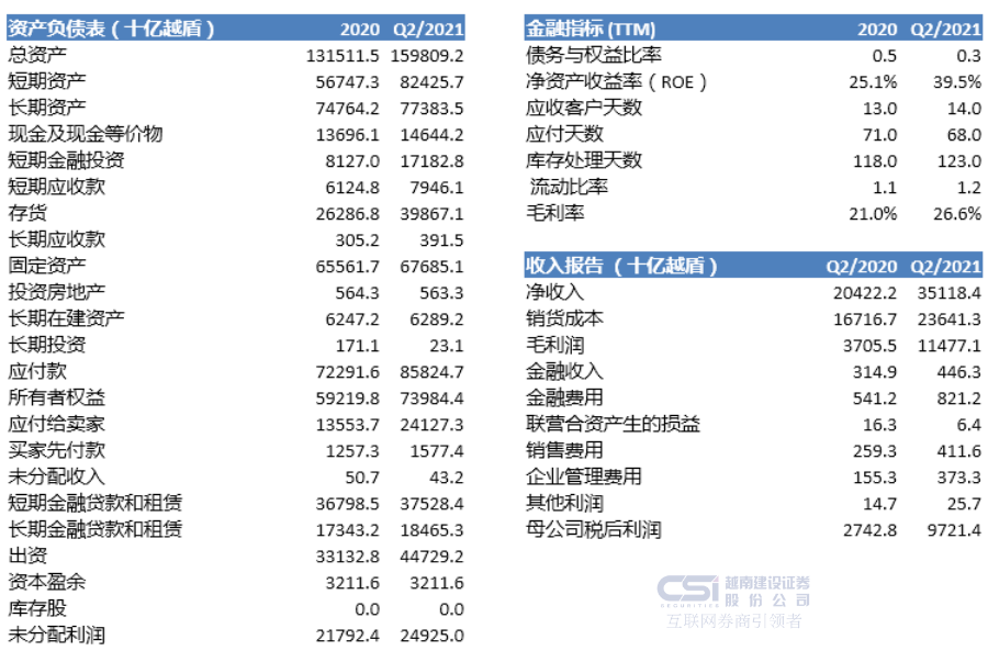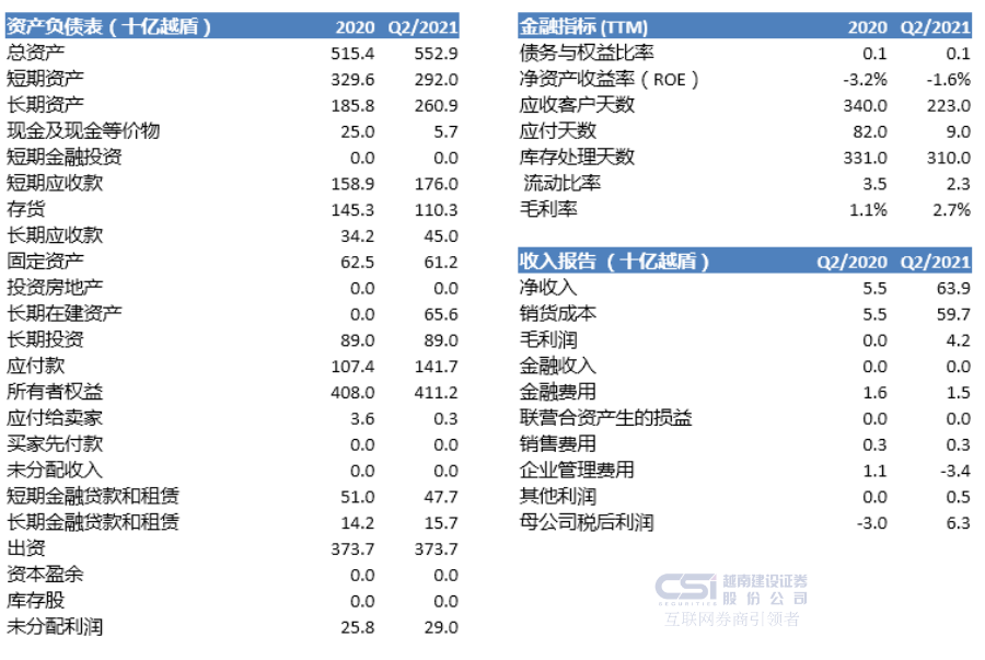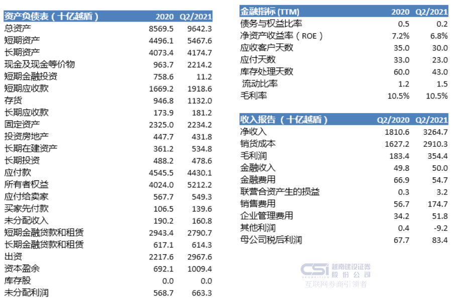 •二季度末,TTH的收入和税后利润分别达到639亿越盾和63亿越盾,同比增长分别为1061.8%和310.0%。