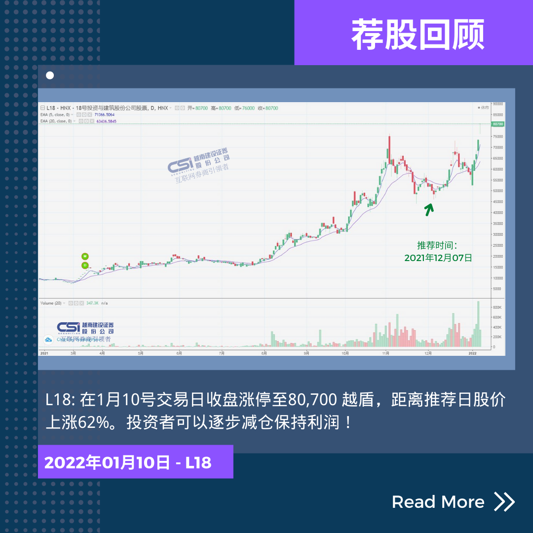 股票价格波动:L18在1月10号交易日收盘涨停至80,700,距离推荐日股价上涨62%。投资者可以逐步减仓保持利润!