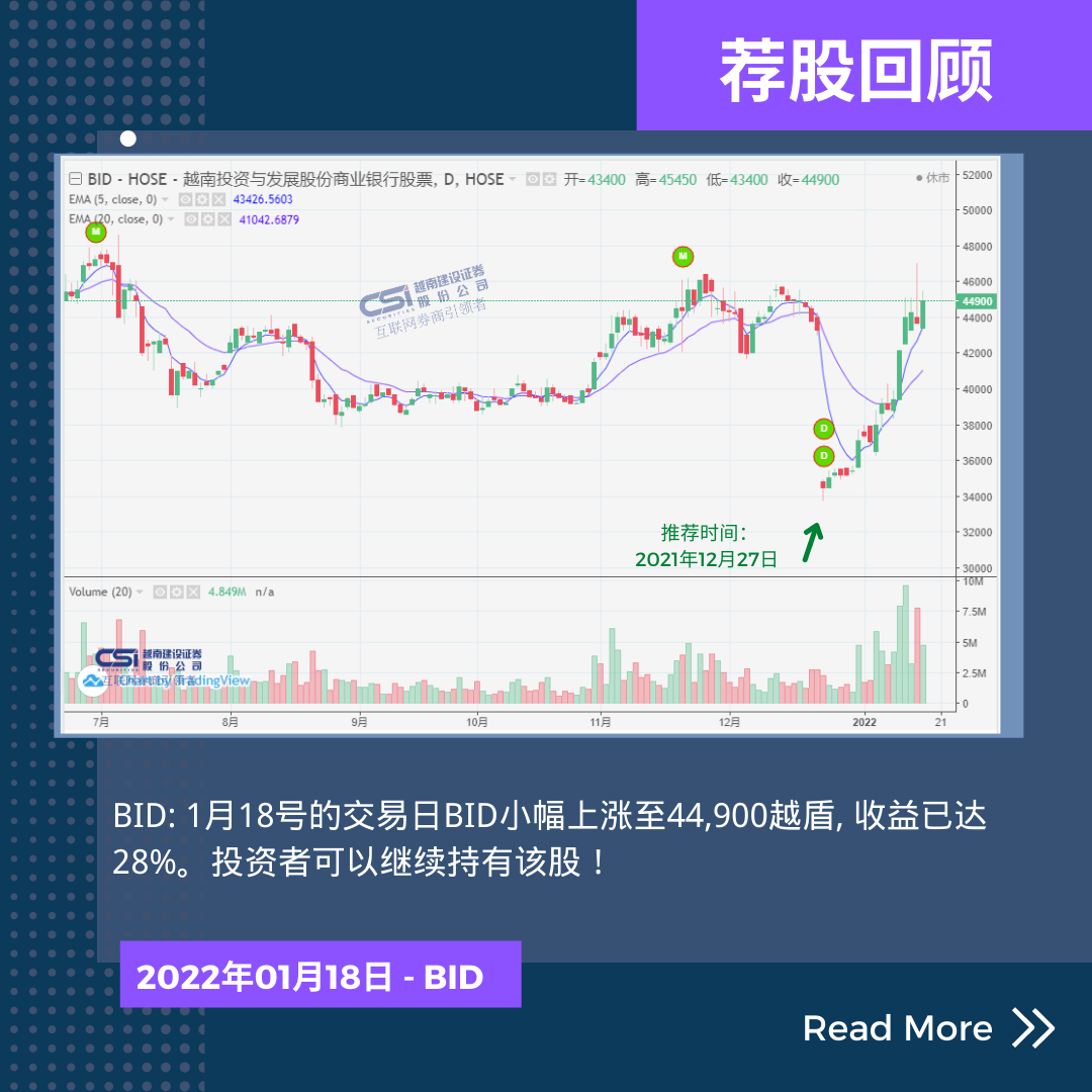 ???? 股价变动:1月18号的交易日BID小幅上涨至44,900越盾。投资者可以继续持有该股!