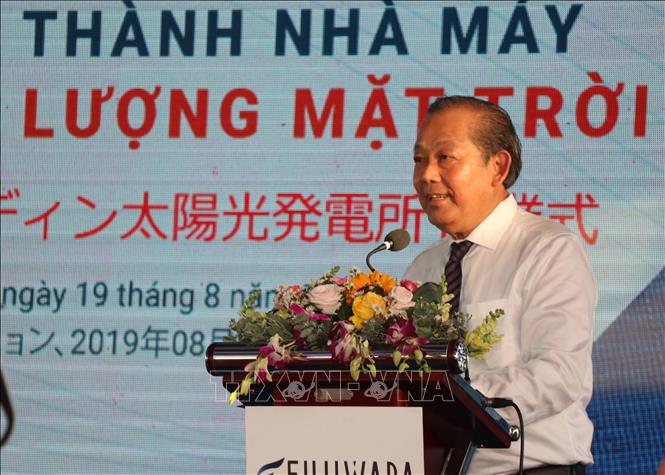 8月19日,越南政府常务副总理张和平在平定省归仁市仁会经济区出席平定滕原太阳能发电厂竣工仪式。