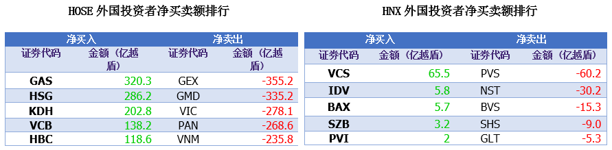 昨日越南股市强势上涨,今日市场早盘开盘后,部分获利盘开始选择离场,特别是大盘股的卖压不断加强,越指围绕昨收价震荡徘徊。与越南指数的走势相反,由于HNX-30成分股的拉升,河内指数以上涨收盘。