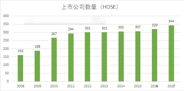 截止2017年底,胡志明证券交易所上市公司数量达344家。