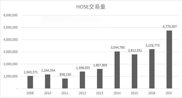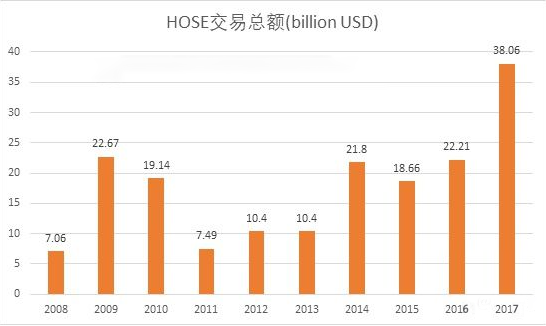 截止2017年,胡志明证券交易所交易总额约为380亿美元,创历史新高。