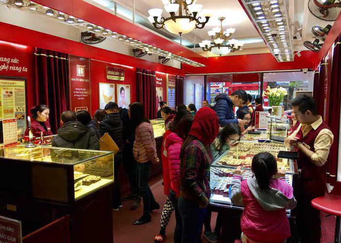 春节的氛围仍笼罩着黄金市场,交易不多但因临近财神日因此近几日的黄金价格仍处于高水平,买入价和卖出价之间的差价最高值为40万越盾/两。SJC 黄金价格高于世界金价50万-53万越盾/两。