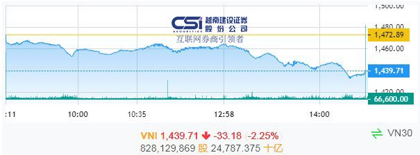 截至收盘,越南指数下跌33.18点至1439.71点。