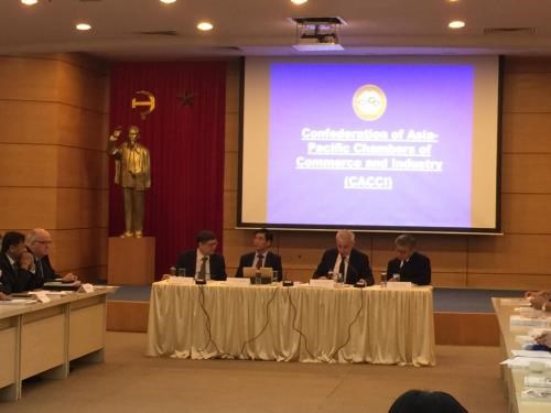 越通社河内——亚太工商总会(CACCI)正在越南进行工作访问。值此之际,4月23日,越南工商会(VCCI)举行了“越南企业与亚太工商总会成员企业” 对接会。该活动目的是协助各家企业寻找合作与投资机会。