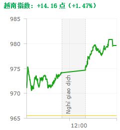 截至本周最后交易日,越南指数下跌9.28点,报979.63点,跌幅0.94%,成交11.13亿股,成交总额为25.008万亿越盾。河内指数微涨0.44点,报107.26点,涨幅0.41%,成交2.5亿股,成交总额为3.501万亿越盾。