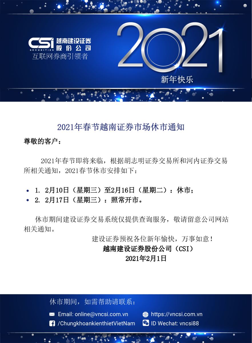2021年春节越南证券市场休市通知