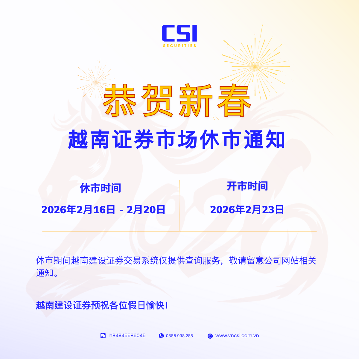2026年春节即将来临, 根据胡志明证券交易所和河内证券交易所相关通知,2026年春节节休市安排如下: