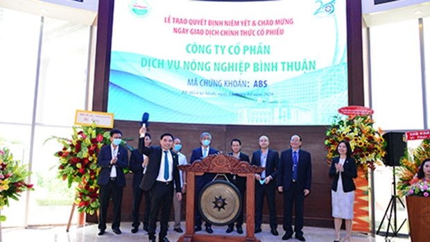 平顺农业服务股份公司3月18日在胡志明市证券交易所(HOSE)正式挂牌上市,公开发行新股2880万只,股票代码为ABS,市值约达2880亿越盾,首日发行价格为10800越盾/股,股价波动幅度为 +/-20%。